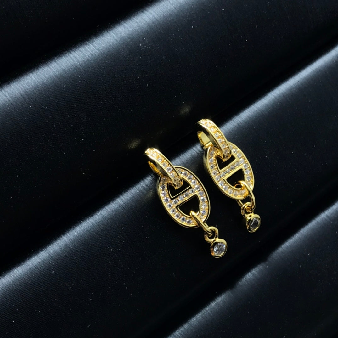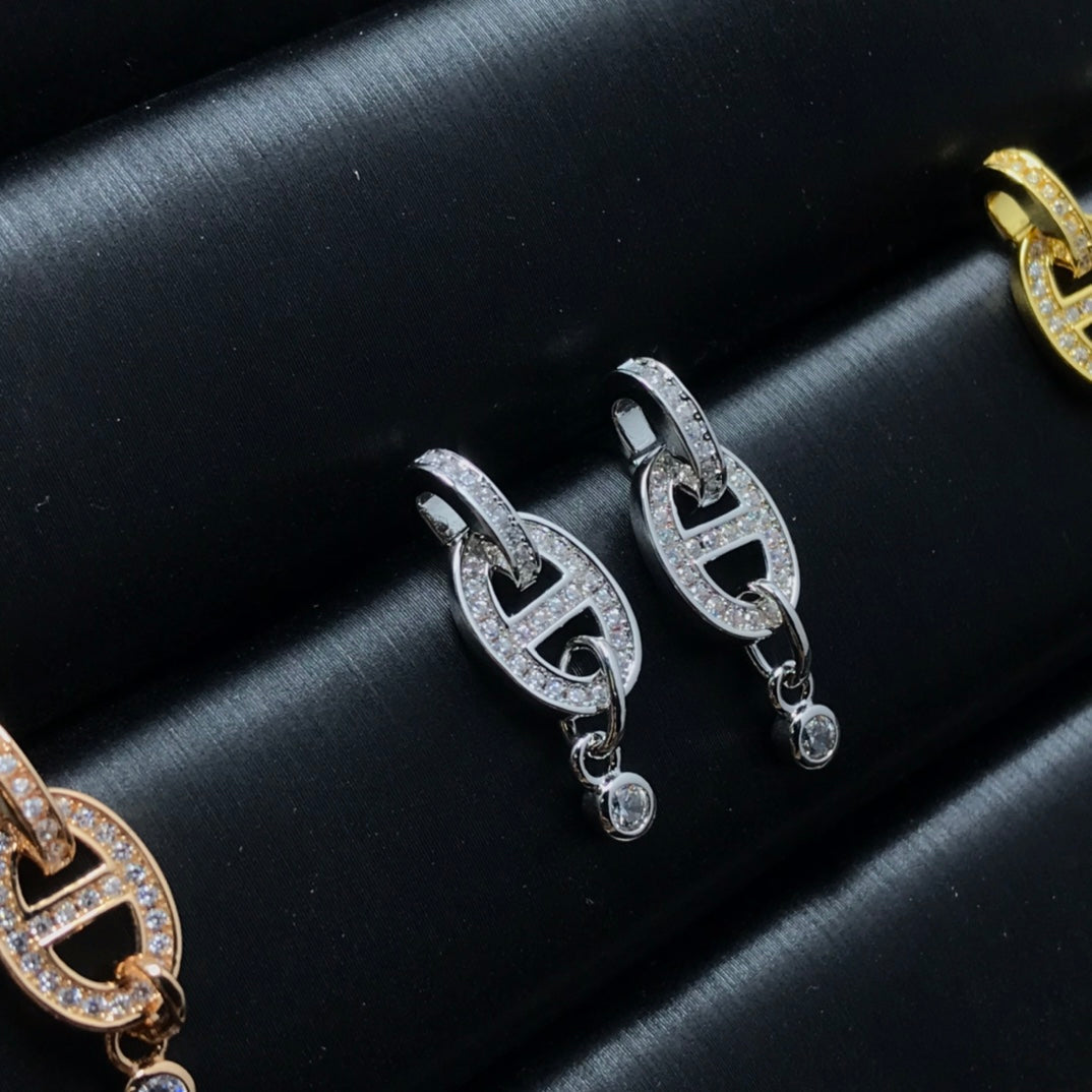 HM PIG NOSE FULL OF DIAMOND EARRINGS